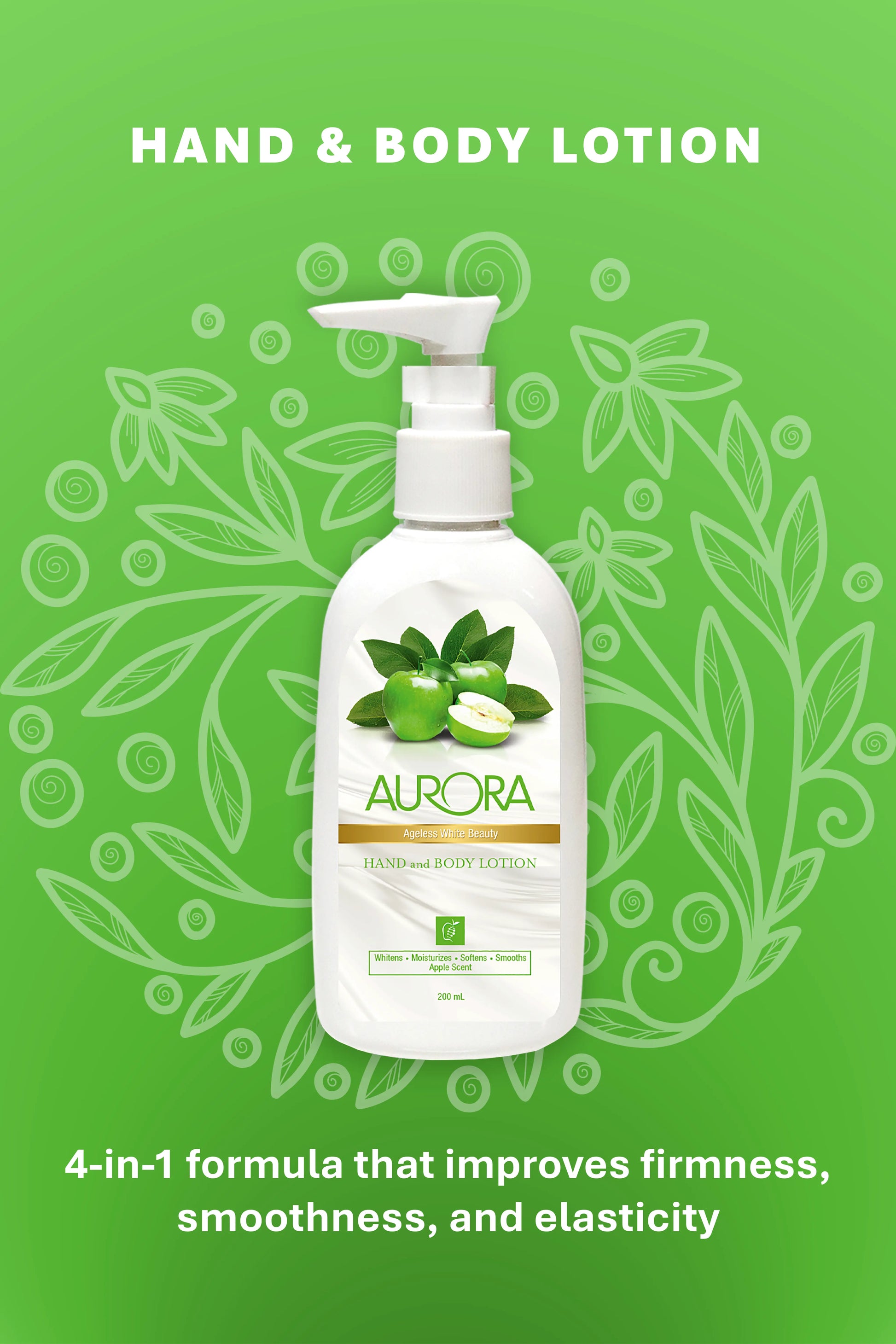 Aurora Hand & Body Lotion is a nourishing, non-greasy moisturizer designed to hydrate, brighten, and smooth your skin from head to toe. Infused with natural oils, botanical extracts, and Swiss Apple Stem Cells, it delivers long-lasting softness and a radiant glow.